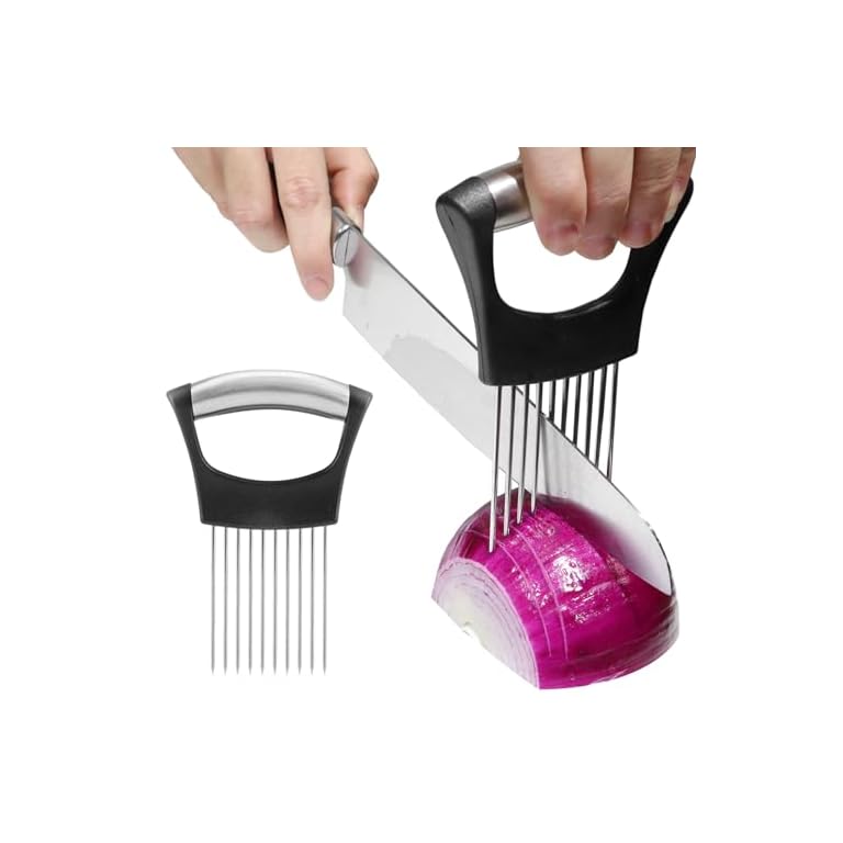 JAYVAR Onion Holder for Slicing, Onion Cutter Vegetable Chopper, Stainless Steel Tomato Slicer Vegetable Cutter for Potato, Avocados, Eggs, Food Slicer Assistant Tool for Fruit Lemon and Meat