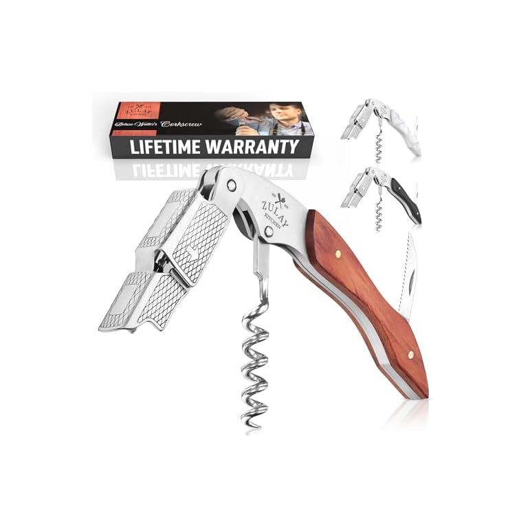 Zulay Kitchen Corkscrew Wine Opener – Premium 420 Stainless Steel & Rosewood Wine Bottle Opener – Double Hinged Opener with Foil Cutter & Cap Remover – Rosewood