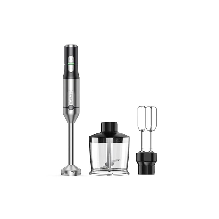Mueller Multistick 800W 4-in-1 Immersion Blender Handheld, 12 Speed Hand Mixer – Turbo Boost, Heaviest Duty Copper Motor, Titanium Blades Hand Blender, Milk Frother Wand, Whisk, Beaker, Chopper, Grey