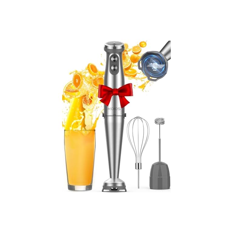KOIOS Immersion Blender, 1000W Anti-scratch 3-in-1 Hand Blender, Upgraded 12 Speed Stainless Steel Blade Stick Blenders with Turbo Mode, Whisk and Milk Frother, Non-BPA