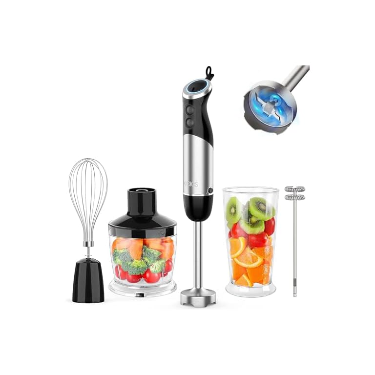 KOIOS Upgraded Immersion Blender Handheld, 1000W 12-Speed 5 in 1 Hand Mixer Stick Blender with 304 Stainless Steel Blade,Food Processor,Beaker,Egg Whisk&Milk Frother,Non-BPA,Smoothies Purée Baby Food