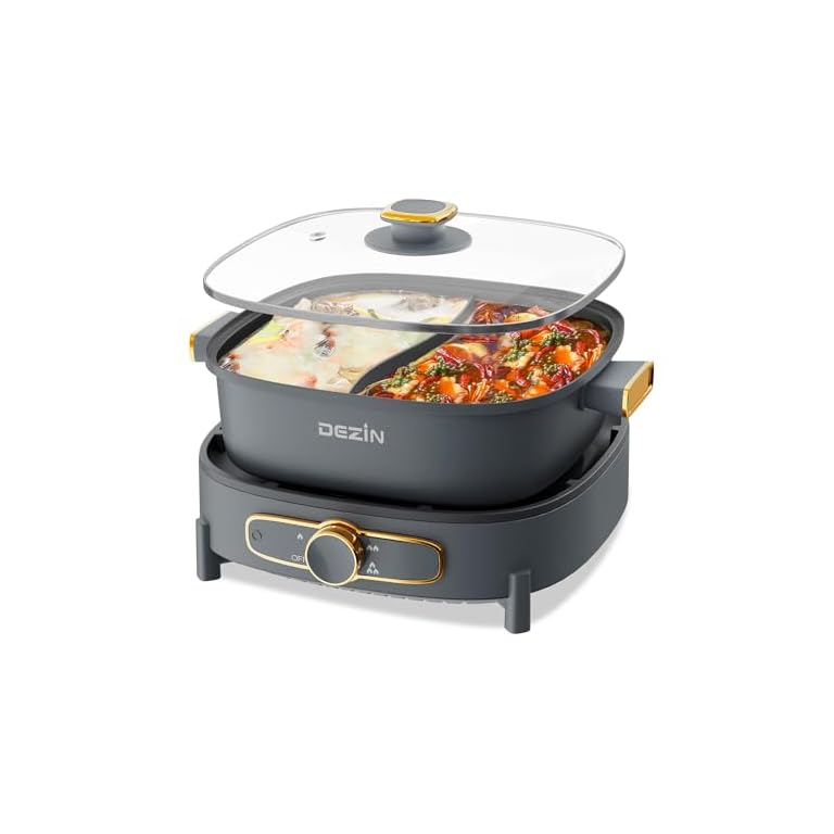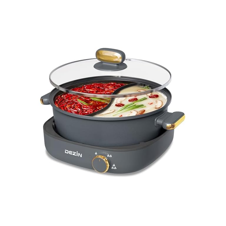 4L Electric Hot Pot with Divider – Dual-Flavor Shabu Shabu Pot with Slow Cooker Function, 1500W, Ideal for Family Meals & Social Gatherings, Black