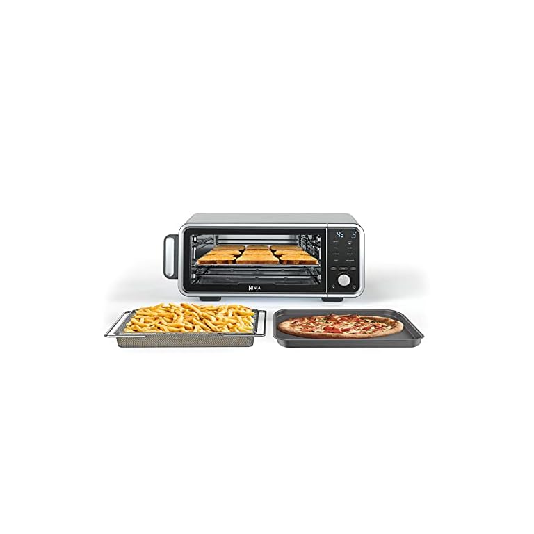 Ninja SP101 Digital Air Fry Countertop Oven with 8-in-1 Functionality, Flip Up & Away Capability for Storage Space, with Air Fry Basket, Wire Rack & Crumb Tray, Silver