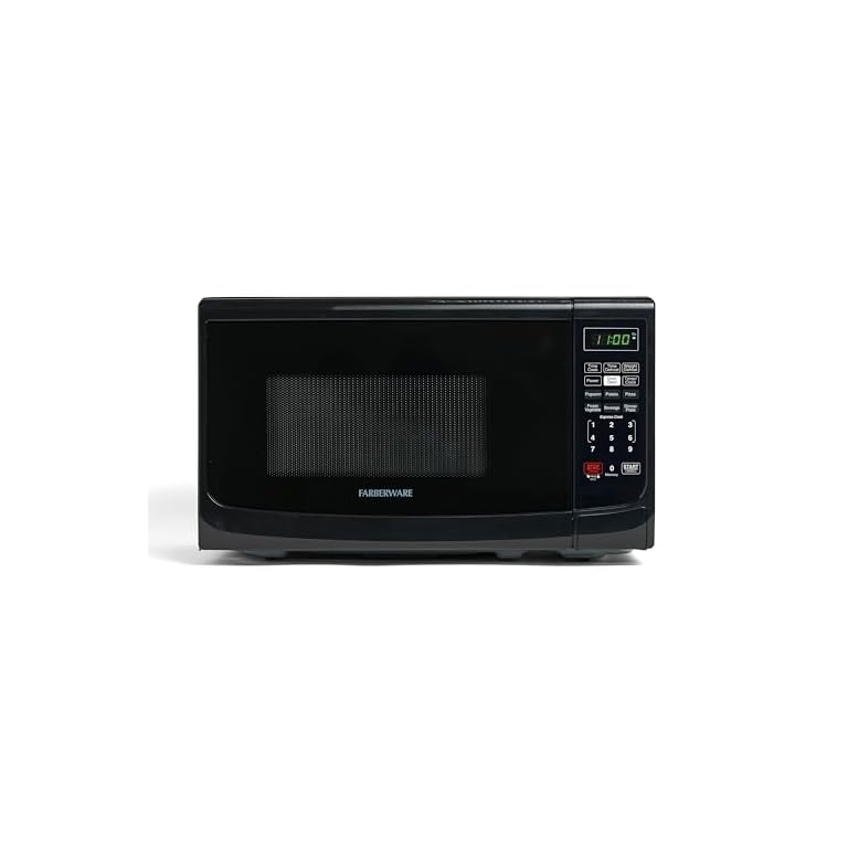 Farberware Countertop Microwave 700 Watts, 0.7 Cu. Ft. – Microwave Oven With LED Lighting and Child Lock – Perfect for Apartments and Dorms – Easy Clean Grey Interior, Retro Black