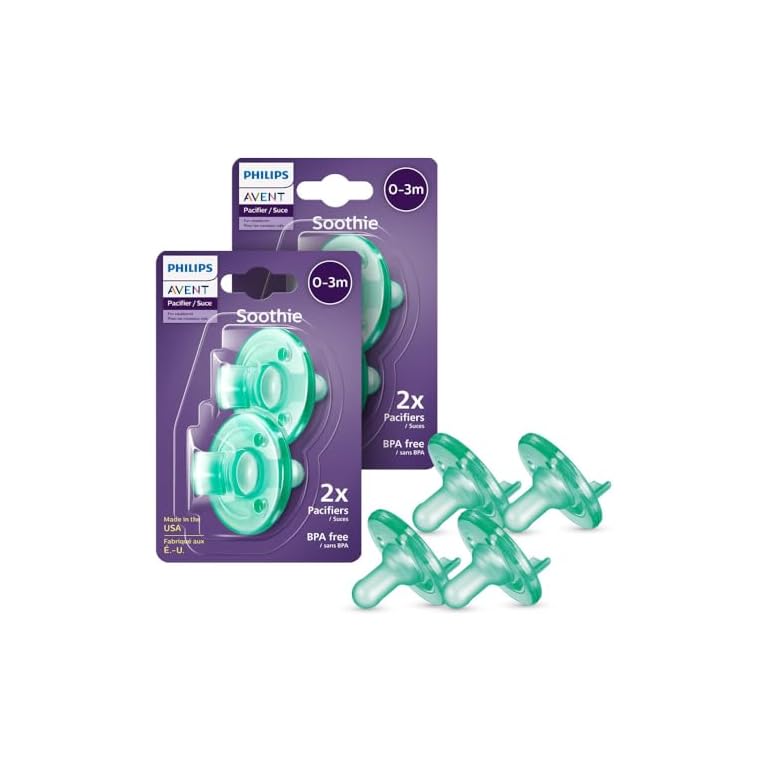 Philips Avent Soothie 0-3 Months Orthodontic Baby Pacifiers, 100% Silicone Pacifiers, One Piece, BPA-Free, Green, 4 Pack, Model SCF190/41