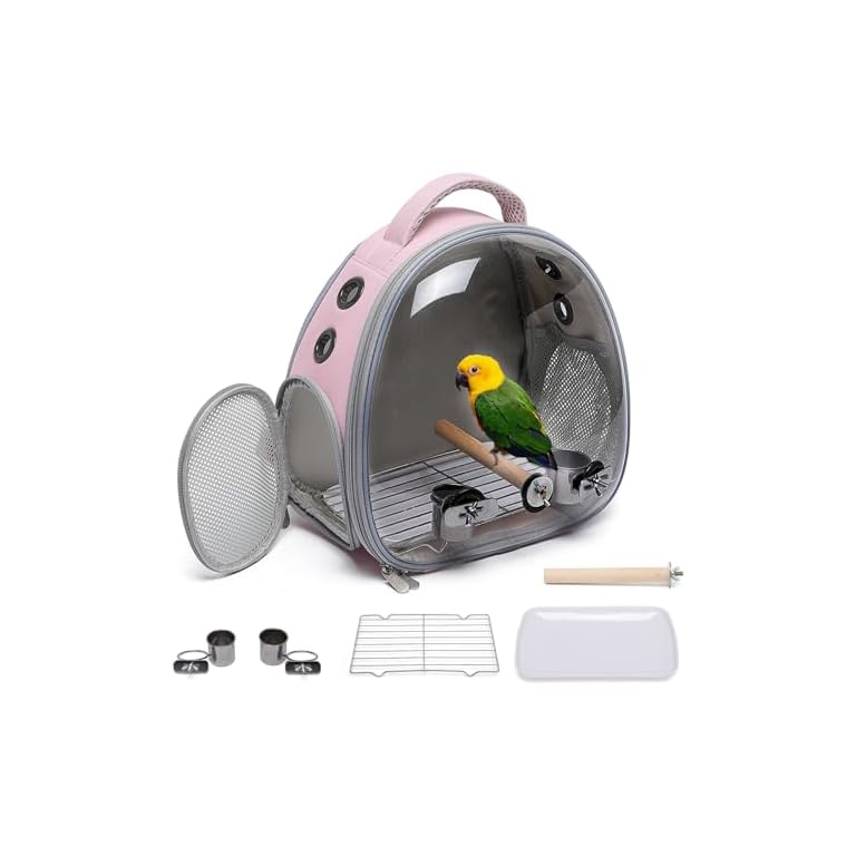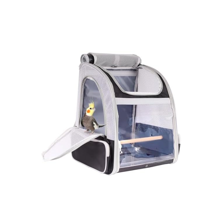 Bird Carrier with Perch Parakeet Travel Carrier Bag Portable Bird Backpack with Plat Breathable Parrot Travel Cage for Small Pets