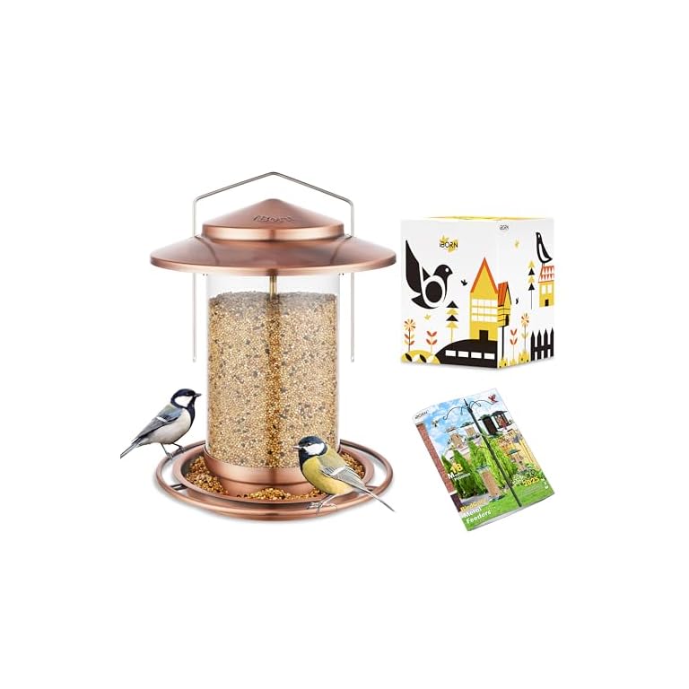 iBorn Metal Bird Feeders for Outdoors Hanging,Wild Bird Feeders for Cardinal,18cm Large Roof&Tray Brushed Copper 6 Port (Seed is not Included)