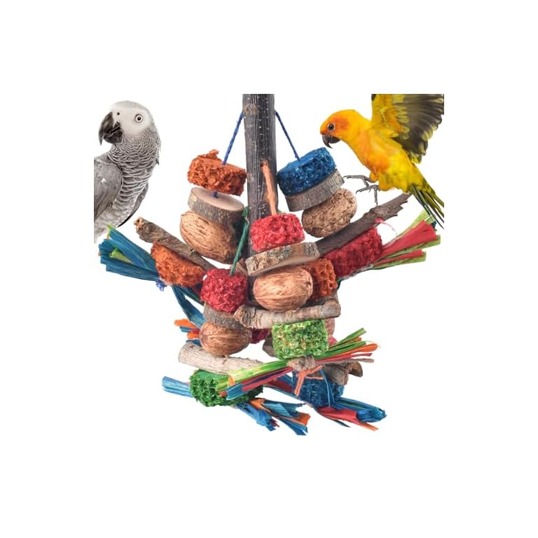 Bissap Bird Chew Toys, Natural Bark Corncob Nuts Parrot Toys and Treats for Conure Cockatoo Parakeet Budgies Cockatiel Lovebirds Pets Cage Bite Toy