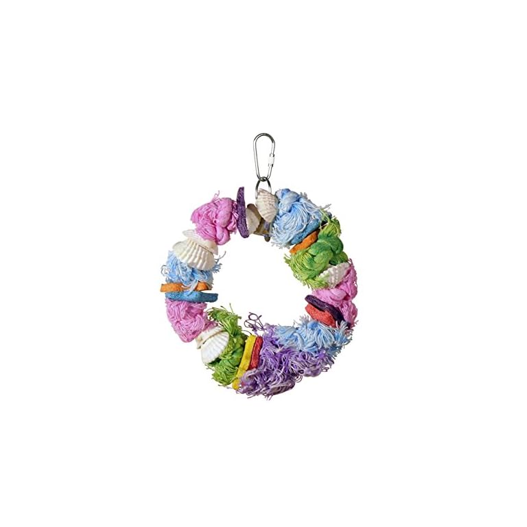 Super Bird Creations SB1107 Bagel Cascade Bird Toy, Large Bird Size, Refillable Bagels, 15” x 4.5”