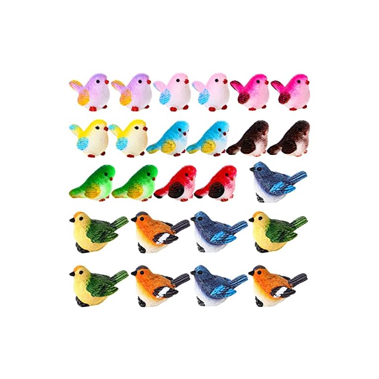 Unittype 25 Pcs Miniature Bird Figurines Animal Figurines Tiny Mini Resin Birds Toy Statues Animal Model for Garden Micro Landscape Home Terrarium Crafts Dollhouse Decorations