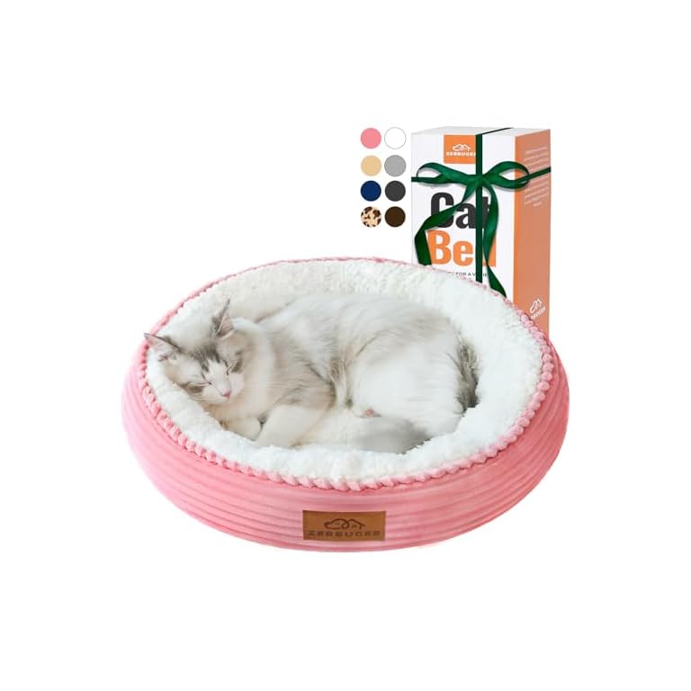 BALANCE Cat Bed Kitten Bed, Washable Round Cat Beds for Indoor Cats, Super Soft Plush Faux Fur Pet Bed for Puppy and Kitten with Anti-Slip Bottom