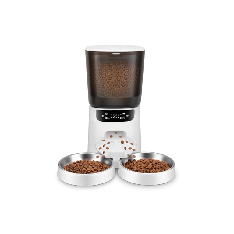 Automatic Cat Feeder- 4L Timed Cat Food Dispenser 1-6 Meals Control for Cat and Small Dog- Auto Pet Feeder with Desiccant Bag Keep Fresh for Reliable Easy Set Up and Clean- Voice Recorder