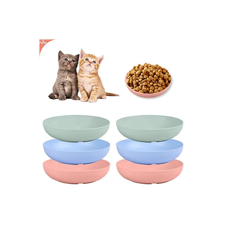 6-Pieces Whisker Fatigue Cat Bowl – 5.5 Inch Shallow Cat Food Dish Wide Cats Wet Feeding Bowls, PET Plate for Kittens and Short Legged Cats, Wheat Straw