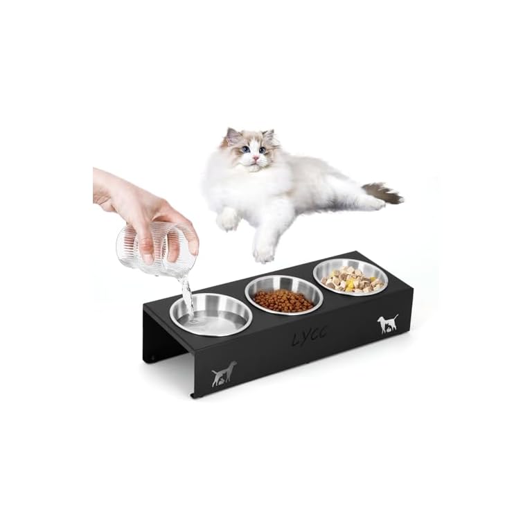 Elevated Cat Food Bowl,15°Tilted Stand Anti Vomiting Raised Cat Dishes for Food and Water,3 Stainless Steel Bowls,Non-Slip No Spill,Cats and Puppy