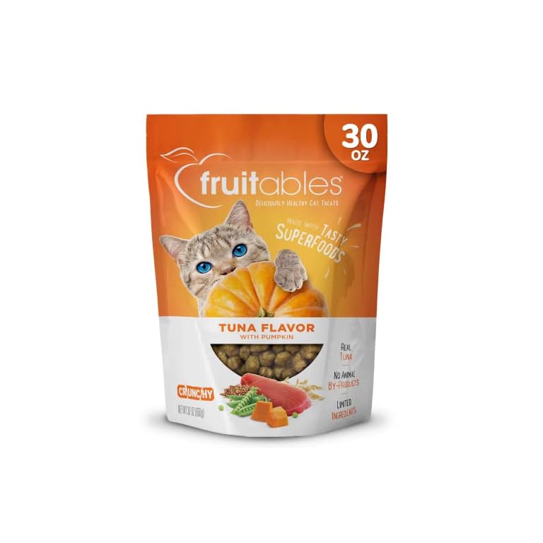 Fruitables Cat Treats, Healthy Treats for Cats, Low Calorie and Packed with Protein, Crunchy Biscuits, Free of Wheat, Corn and Soy, Made with Real Tuna and Pumpkin, 30oz