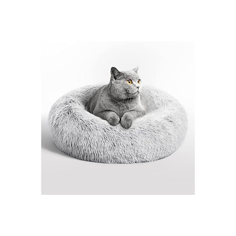 Love’s cabin 20in Cat Beds for Indoor Cats – Cat Bed with Machine Washable, Waterproof Bottom – Grey Fluffy Dog and Pet Calming Cushion Bed for Joint-Relief and Sleep Improvement