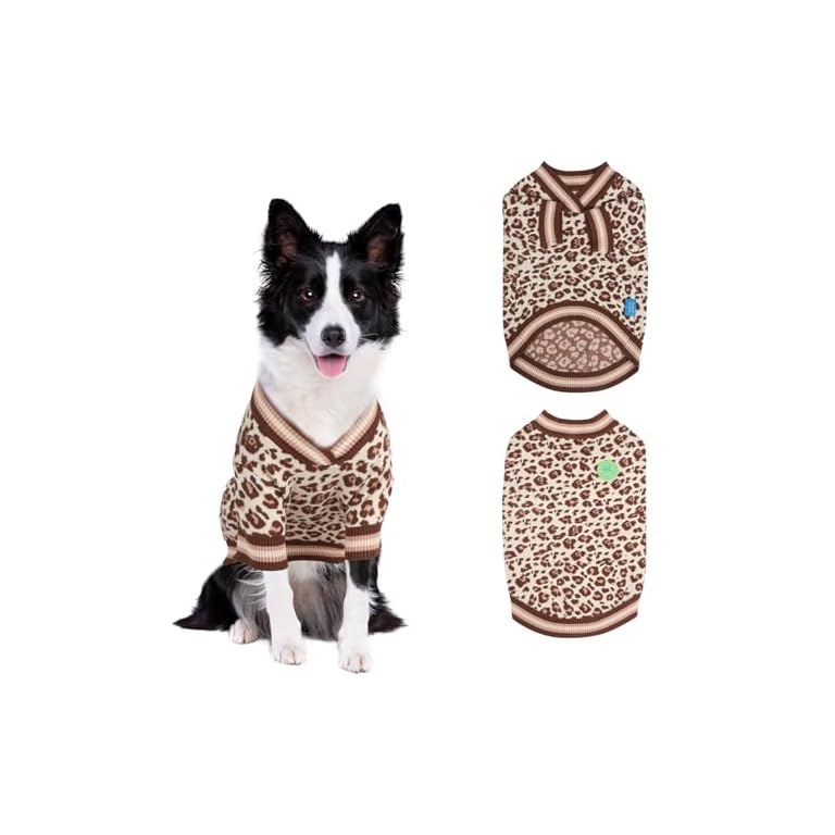 On The Roll, Stacked V-Neck Leopard Print Pullover Dog Sweater, Pet Dogs Sweaters, Knitted Dog Clothes, Pet Clothing, Suitable for All Seasons and Types of Dogs, (S