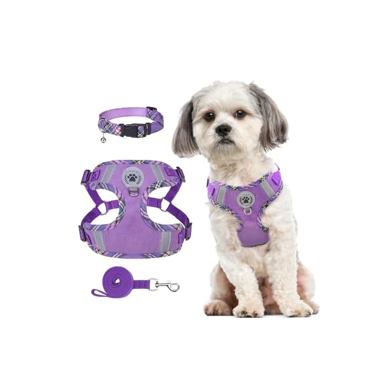 AMTOR Small Dog Harness with Leash Set, No Escape Easy Walk Puppy Harnesses for Training Walking, Step-in Reflective Soft Dogs Vest for XS S Medium Extra-Small Large Sized Dog(Green,S)