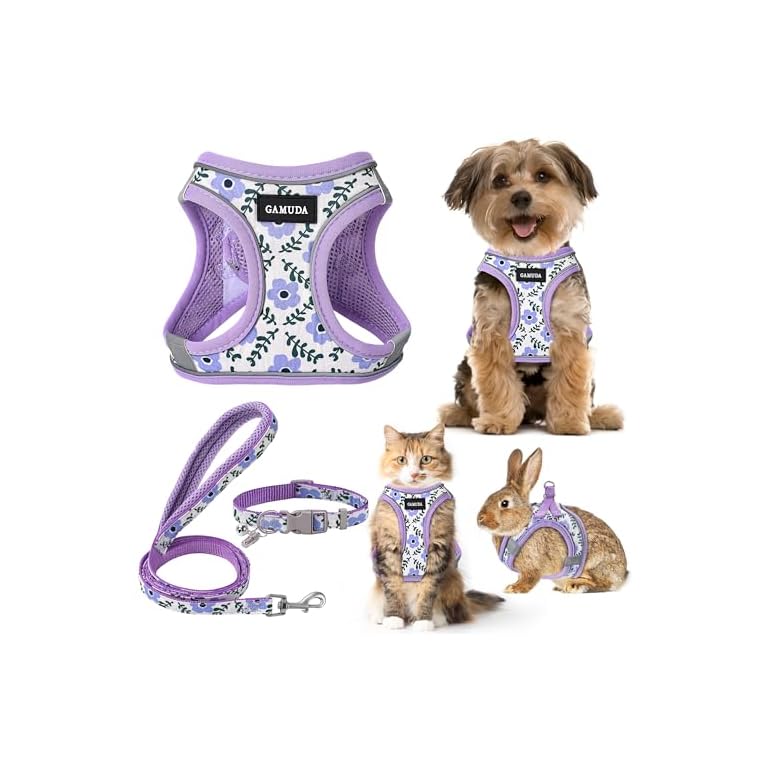 IVY&LANE No Pull Dog Harness for Small Dogs, Dog Vest Harness with Leash, Safety Belt and Storage Strap, Fully Adjustable Harness, 360° Reflective Strip, Soft Handle (Purple, S)