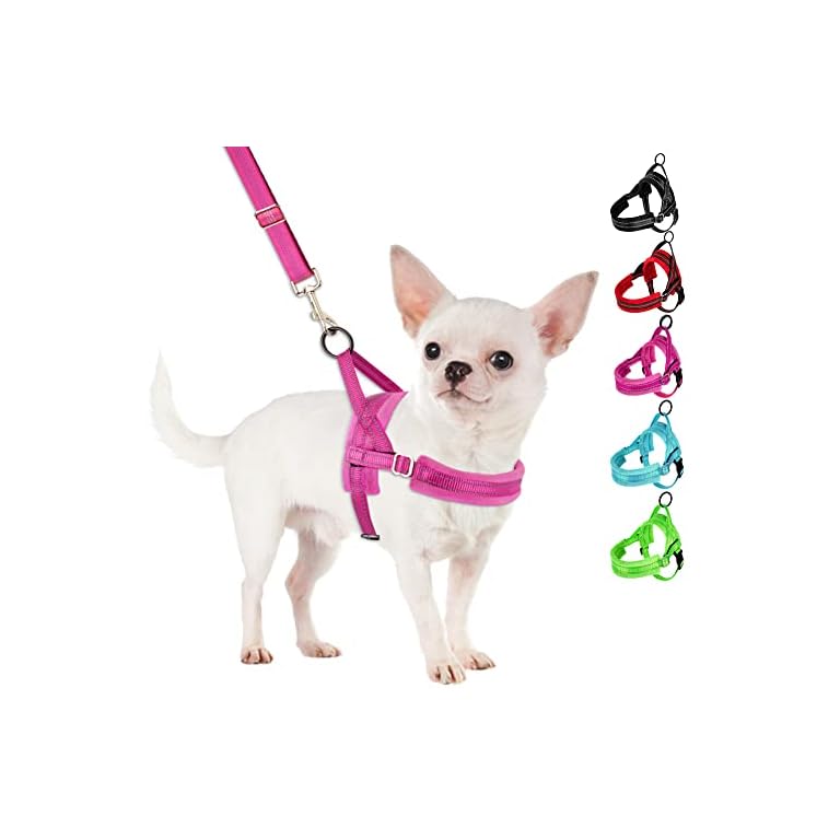SlowTon No Pull Small Dog Harness and Leash Set, Puppy Soft Vest Harness Neck & Chest Adjustable, Reflective Lightweight Harness & Anti-Twist Pet Lead Combo for Small Medium Dogs (Fuchsia, XXS)