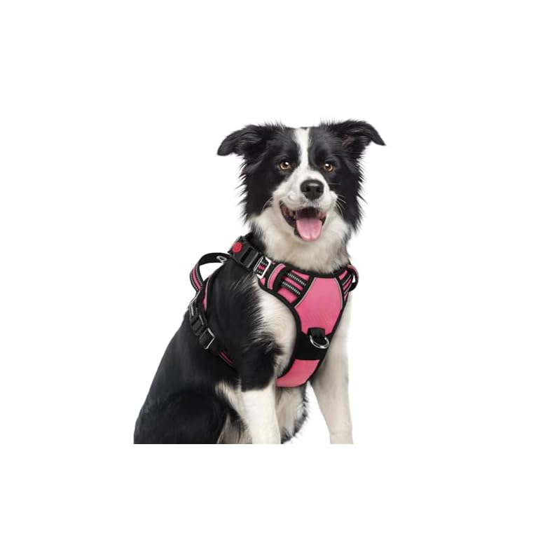 rabbitgoo Dog Harness Medium Sized, No Pull Dog Vest with 3 Buckles, Adjustable Soft Padded Pet Harness with Easy Control Handle and Reflective Strips, Pink, M