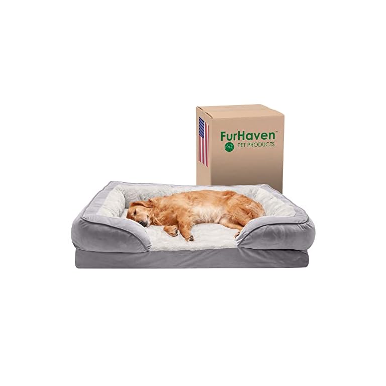 Furhaven Cooling Gel Dog Bed for Large Dogs w/ Removable Bolsters & Washable Cover, For Dogs Up to 95 lbs – Plush & Velvet Waves Perfect Comfort Sofa – Granite Gray, Jumbo/XL, 40.0″L x 32.0″W x 9.5″Th