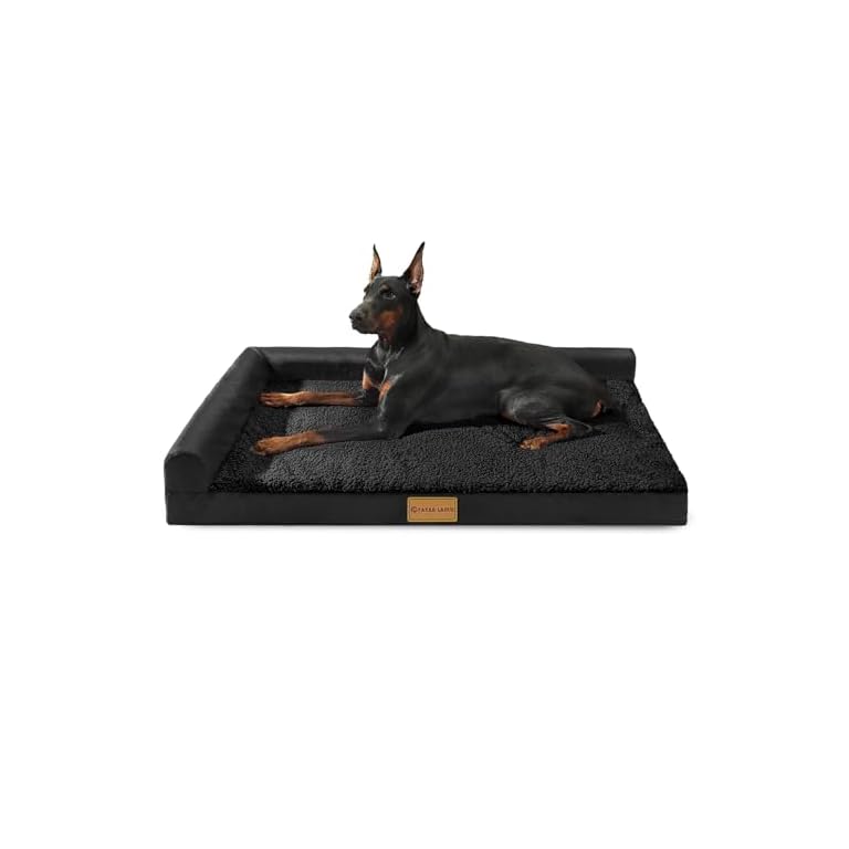 Patas Lague Orthopedic Dog Bed for Large Dogs, Waterproof L Shaped Large Pet Sofa Beds with Removable Washable Cover, Soft Comfortable Pet Couch Mat with Nonskid Bottom, 36”X24” Black