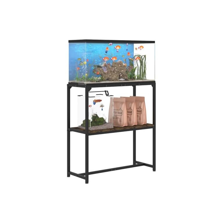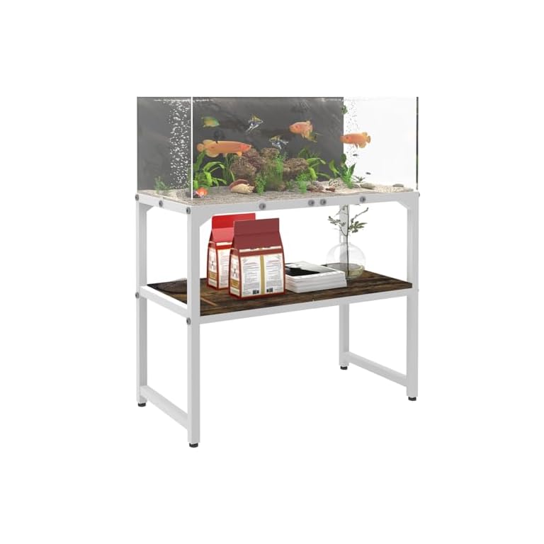 10-20 Gallon Fish Tank Stand, Metal Aquarium Stand with Adjustable Non-Slip Foot and Wooden Shelf, Reptile Tank Stand Easy to Assemble for Home Office, Firm and Steady(Tank not Included)