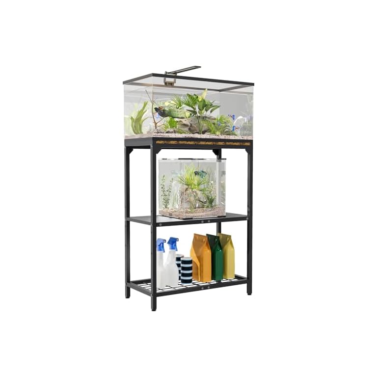 10-20 Gallon Fish Tank Stand Storage Shelf,Heavy Duty Sturdy Reptile Stand,28.43″*27.56″*15.75″Gallon Aquarium Stand,Reptile Tank Stand,Terrarium Stand,Breeder Tank Stand,Total Load 600lbs,Black