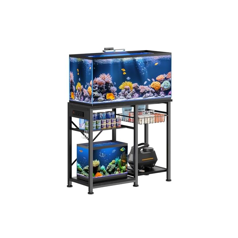 20-29 Gallon Aquarium Stand with 6 ft Power Strip, 5-Tier Metal Frame Fish Tank Stand 20 Gallon Fish Tank Stand 31.5″ L*15.75″ W Tabletop 400lbs Capacity (Pure Black, 20-29 Gallon)