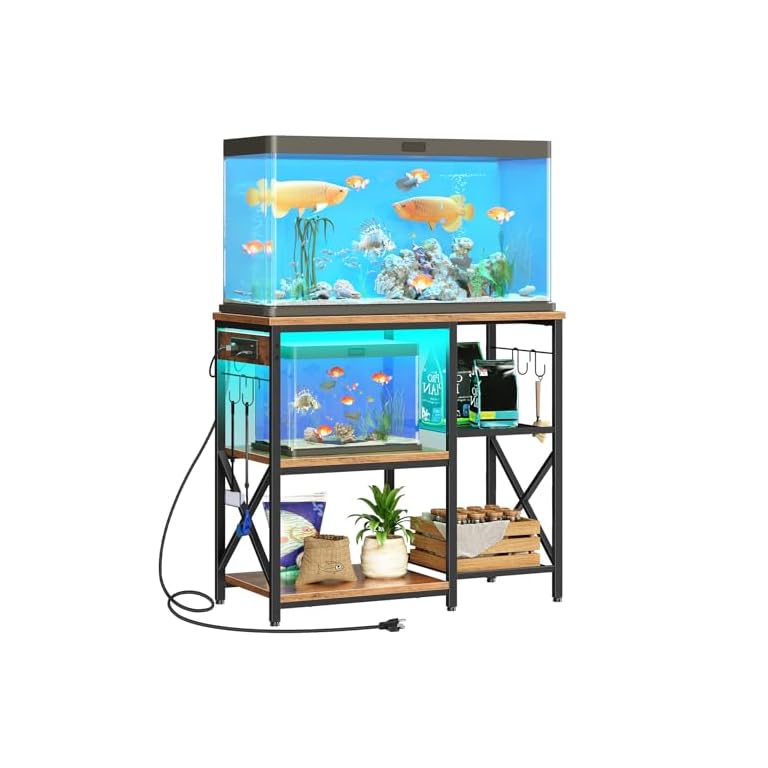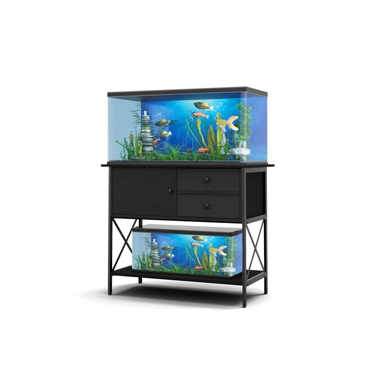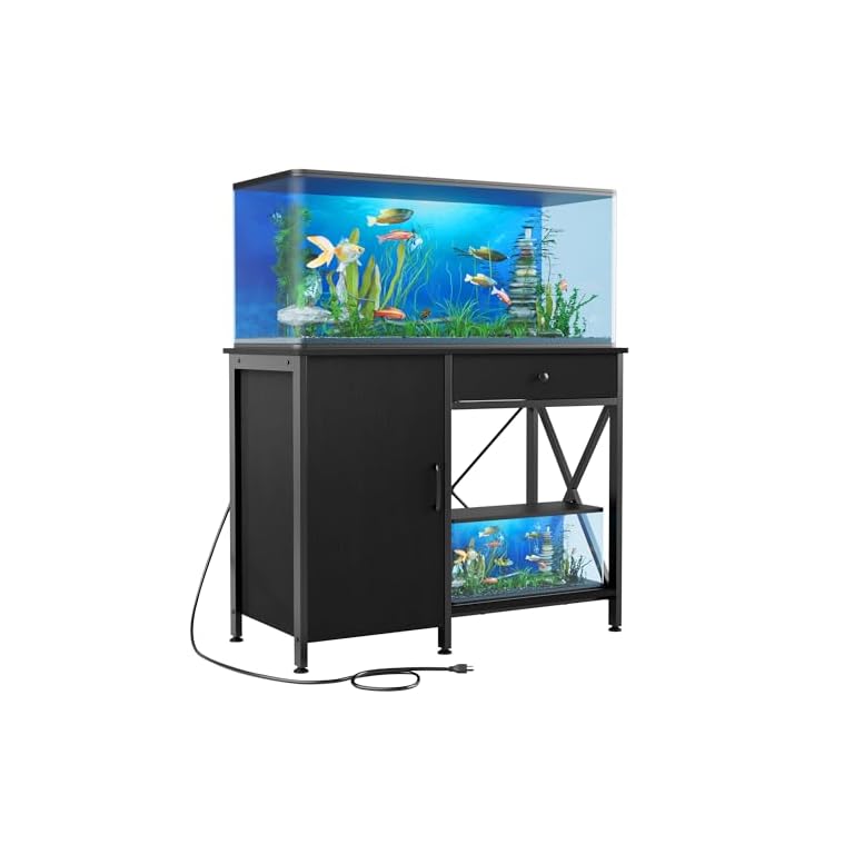 40-50 Gallon Fish Tank Stand: Sturdy Aquarium Stand with Storage for 40-50 Gallon Fish Tank – Metal Terrarium Table Cabinet with Power Outlet for Reptile Turtle (40-50 gallon)