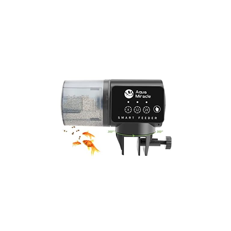 AQQA Automatic Fish Feeder for Aquarium Auto Feeder with 12H/24H/48H Timer 110ml Large Capacity Manual/Auto Feeding Modes Battery Powered Fish Food Dispenser