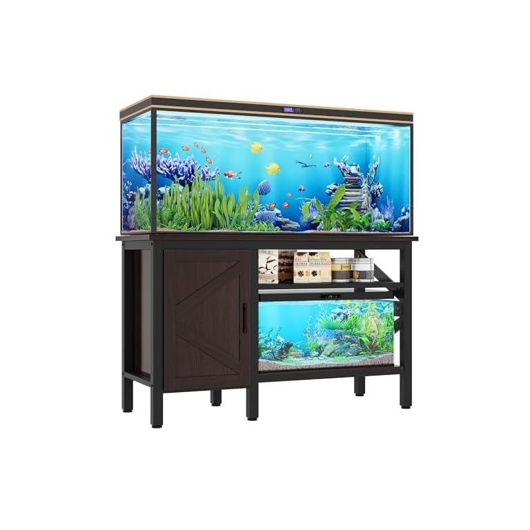 YITAHOME 55-75 Gallon aquarium stand with Power Outlets, Heavy Duty Metal Fish Tank Stand, Cabinet for Fish Tank Accessories Storage suitable for Fish Tank, Turtle Tank, 880LBS Capacity, Black