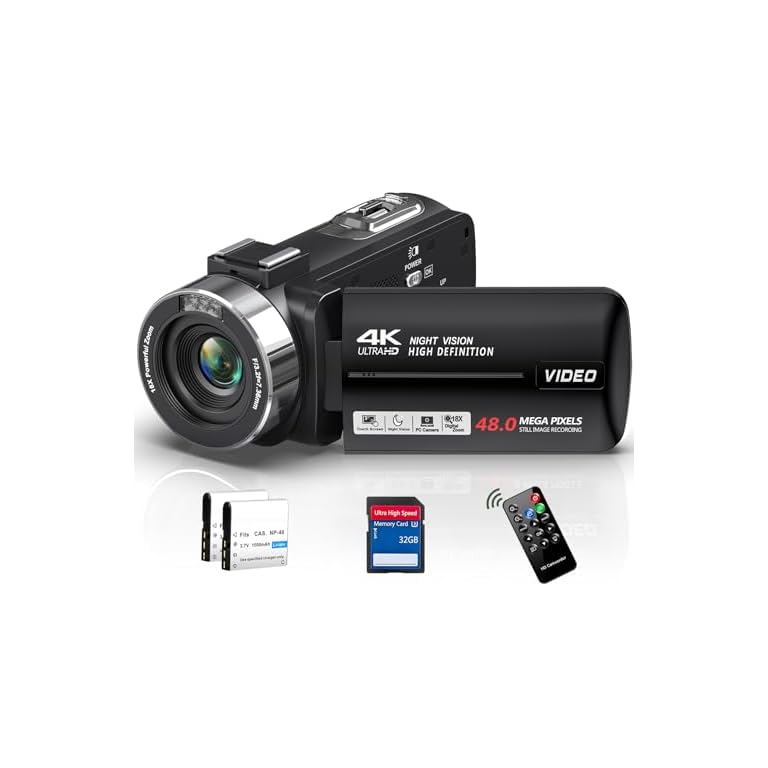 4K Video Camera Camcorder Ultra 44MP Vlogging Camera for YouTube 18X Digital Zoom Camcorder 3.0″ IPS Screen IR Night Vision with External Mic, Controller, 2 Batteries and 32G SD Card