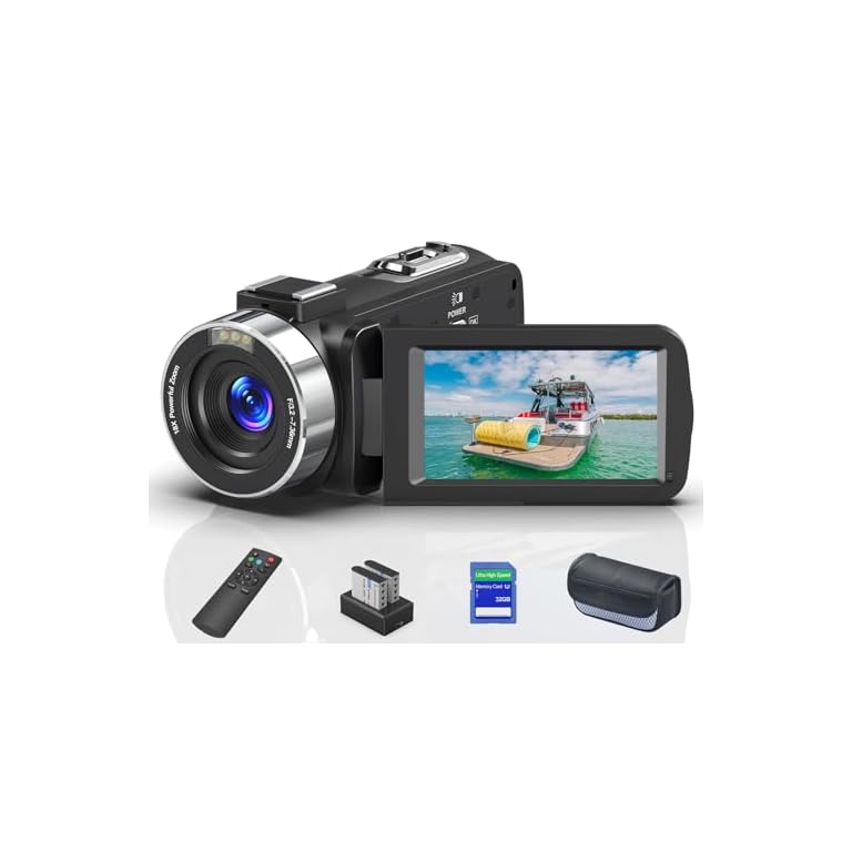 5K Camcorder Video Camera, 56MP Dual Lens Wifi IR Night Vision Vlogging Camera,16X Digital Zoom Touch Screen Camcorder, YouTube Recorder with 64GB SD Card, Tripod, Remote Control, 2 Batteries
