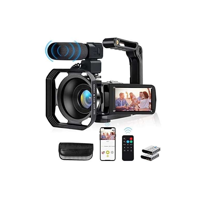 4K Video Camera, Camcorder 48MP Ultra HD WiFi Vlogging Camera for YouTube 18X Zoom 3.0″ Touch Screen Digital Camera with Microphone, Stabilizer, Lens Hood, Remote, 2 Batteries