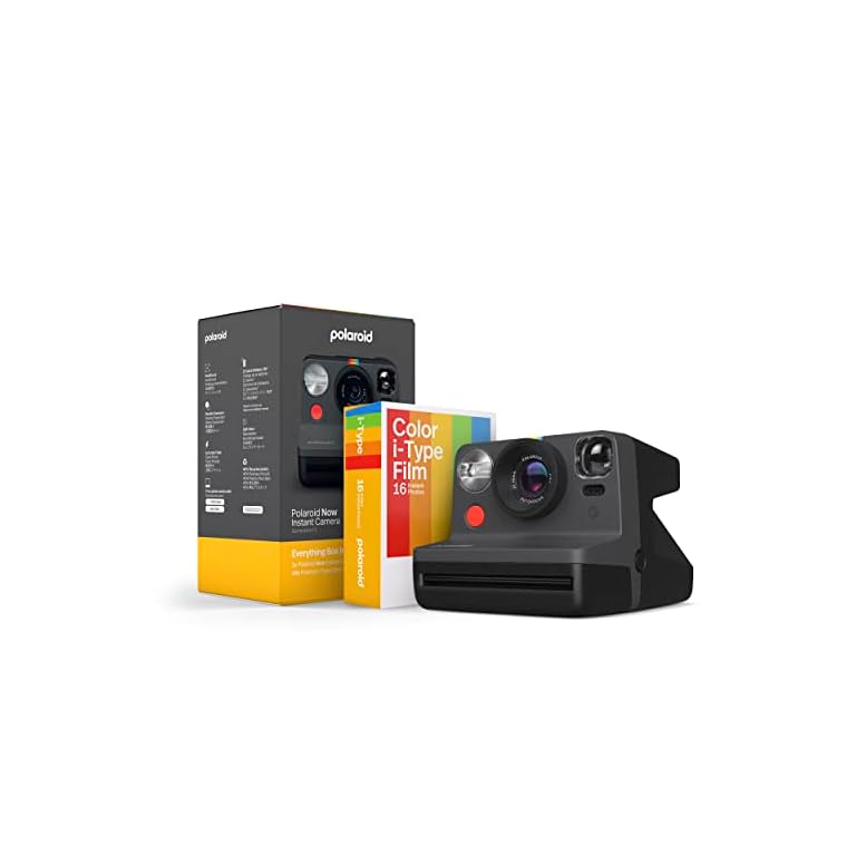 Polaroid Now 2nd Generation I-Type Instant Camera + Film Bundle – Now Black Camera + 16 Color Photos (6248)- Black