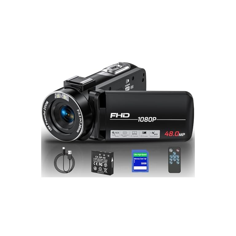 Camcorder Video Camera Full HD 1080P 48MP Camcorder 16X Digital Video Camera for YouTube, 3.0 Inch IPS Screen Vlogging Camera Recorder with Remote Control, Battery and 32GB Card