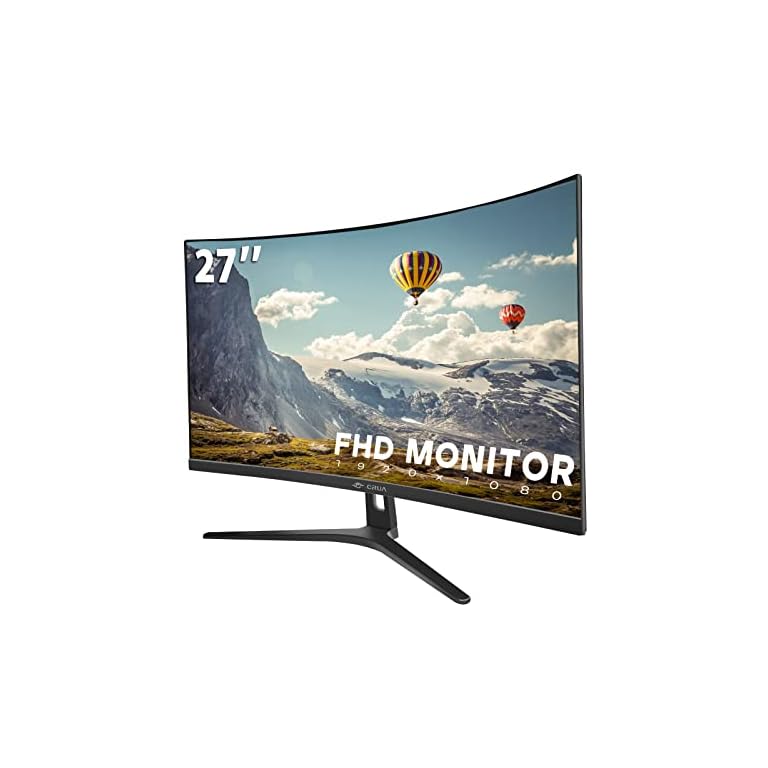 CRUA 27″ Curved Monitor, FHD(1920x1080P) VA Panel 100HZ 120% sRGB Professional Computer Monitor, Narrow Bezels on Three Sides, Blue Light Filter, Office and Dormitory(HDMI, VGA)-Black
