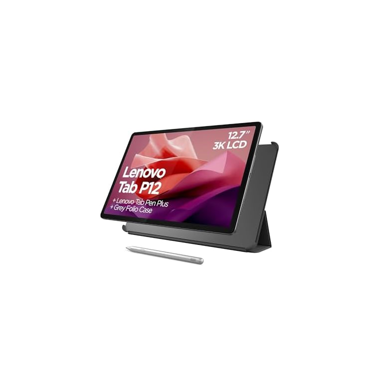 Lenovo Tab P12-2024 – Expansive Touchscreen Tablet – 12.7″ 3K Display – 13MP Camera – 8GB Memory – 128GB UFS Storage – Android 13 – Dolby Atmos – Quad JBL Speakers – Pen and Folio Case Included