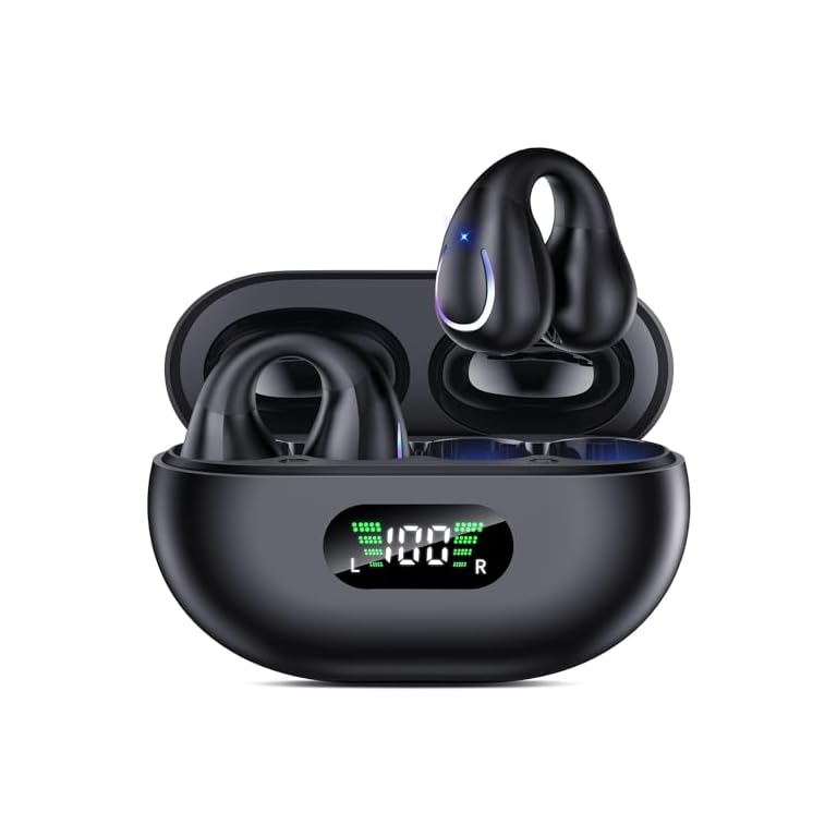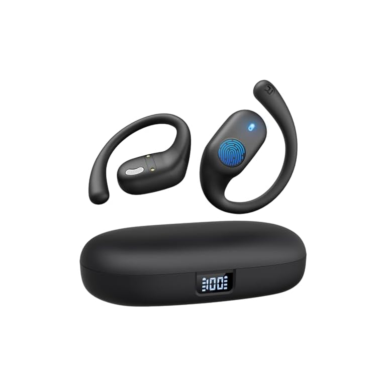Open Ear Headphones – Wireless Bluetooth Earbuds with Smart Power Display, 40H Playtime, Clear Calls, Comfortable Ear Hooks, IPX5 Waterproof Over Earbuds for Sports, Workout, Running