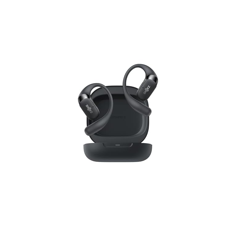 SHOKZ OpenFit – Open-Ear True Wireless Bluetooth Headphones with Microphone, Earbuds with Earhooks, Sweat Resistant, Fast Charging, 28HRS Playtime, Compatible with iPhone & Android, Black