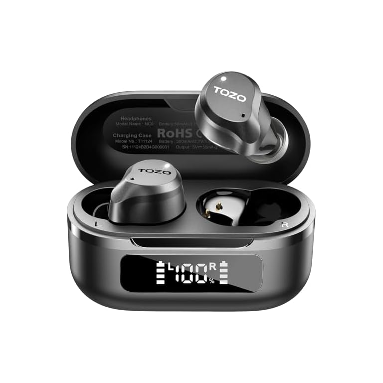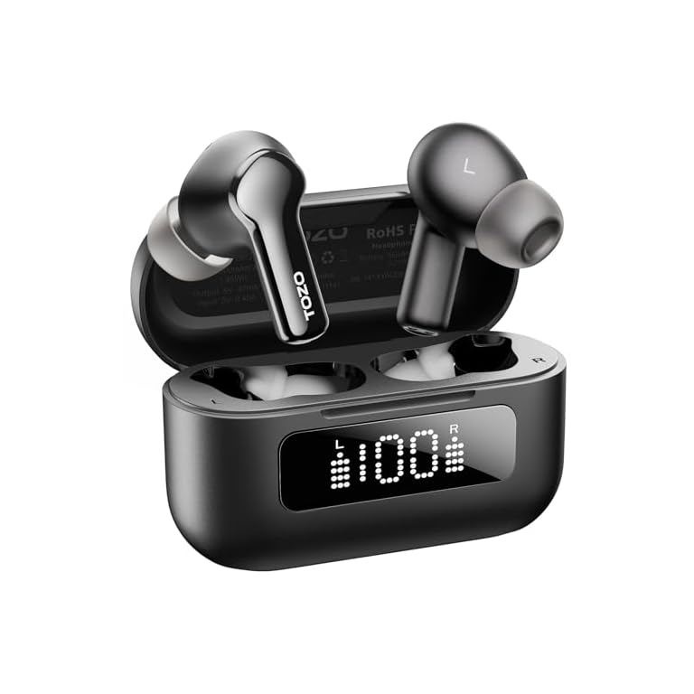 TOZO Hybrid Active Noise Cancelling Wireless Earbuds, 6 Mics ENC Clear Call, IPX8 Waterproof, in Ear Bluetooth 5.3 Headphones Stereo Bass Ear Buds 59H Playtime with LED Display 32 EQs via APP