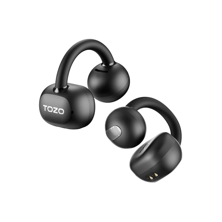 TOZO OpenEarRing True Open Ear Headphones, Lightweight Comfort Open Ear Clip Wireless Earbuds, 40H Play Bluetooth 5.4 Headphones with Smart Digital Display Design Fit Sports Running, Workout Black