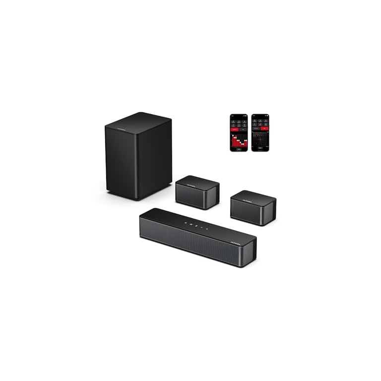 ULTIMEA 5.1 Sound Bar for Smart TV, Virtual Surround Sound System for TV, 320W Peak Power, Adjustable Surround Speakers and Subwoofer, APP Control, Home Theater Soundbar Poseidon D50(2025 New Model)