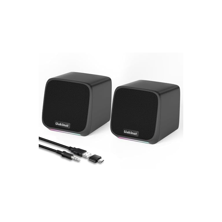 Computer Speakers, 2.0 Speakers for PC or Laptop, 3.5mm Aux Input, USB-Powered PC Speakers with Deep Bass, Suitable for Desktop Computers/Laptops Built in 4 Speaker Diaphragms (Black+Sliver)