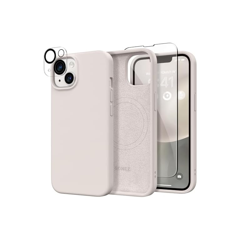GONEZ Magnetic for iPhone 14 Case, Compatible with Magsafe, with Screen Protector + Camera Protector, Anti-Scratch Microfiber Lining, Liquid Silicone Shockproof Protective Phone Case, Stone