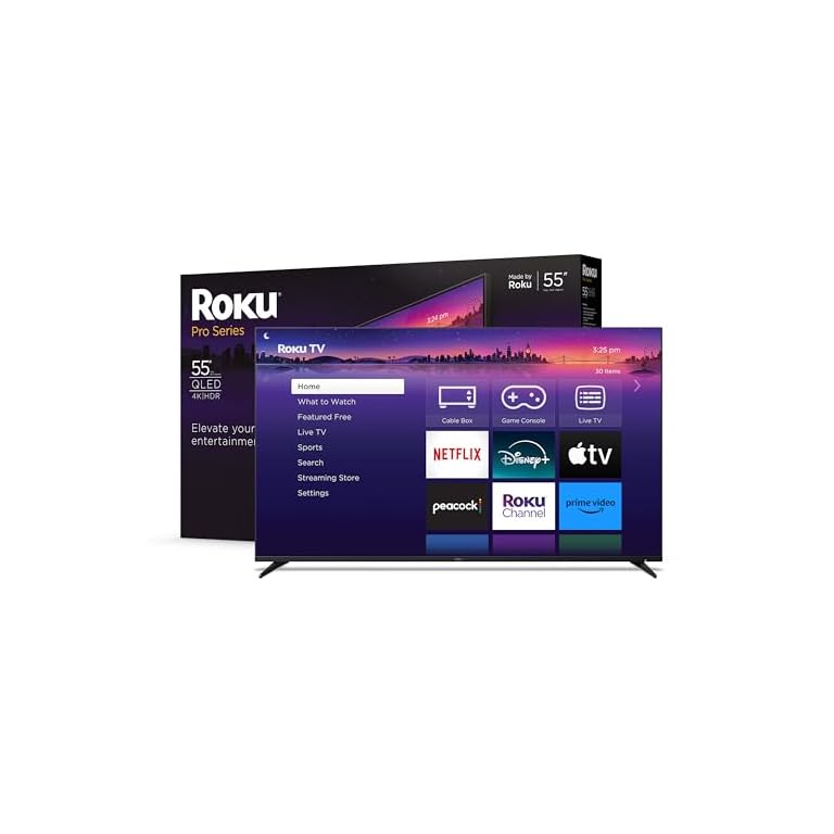 Roku Smart TV – 55-Inch Pro Series 4K QLED RokuTV with Backlit Roku Voice Remote Pro, Dolby Vision IQ, 120Hz Refresh Rate – Live Local News, Sports, Gaming