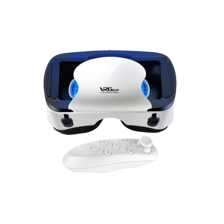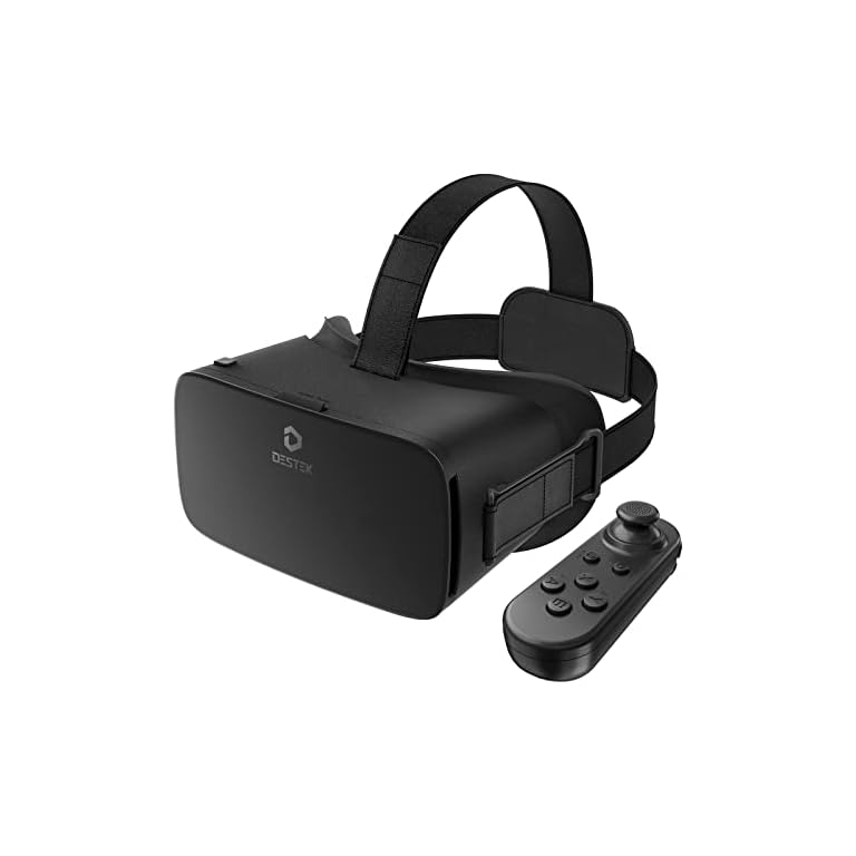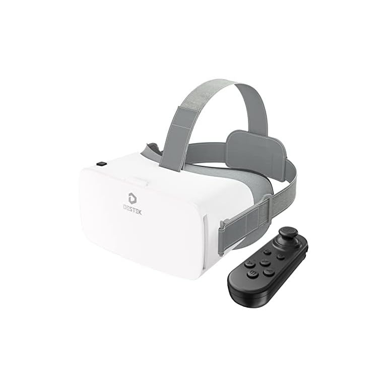 DESTEK V5 VR Headset for Phone with Controller, Anti-Blue Eyes Protected HD Lenses, 110° FOV Virtual Reality Headsets VR Goggles for iPhone 15/14/13/12/11, Samsung, Android – White