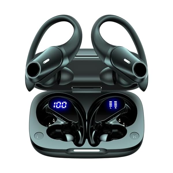 Wireless Earbuds with Earhooks 80Hrs Bluetooth Headphones Over-Ear ENC Noise Canceling Mic Earphones IP7 Waterproof Headset for Sports,Fitness,Workouts and Running Black